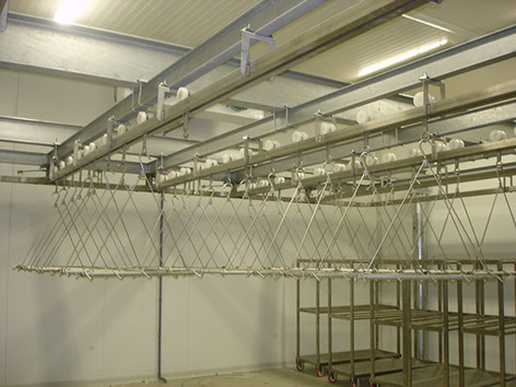 Si realizzano divaricatori elettrici e pneumatici, catene di dislivello, nastri di trasporto per alimenti, ceste per interiora, carrelli di trasporto ed accessori.